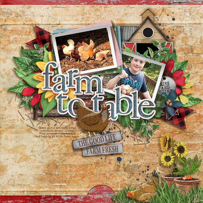 This week I went out to the farm and got down and dirty! I love this brand new collection and coordinating templates which is available this weekend on sale over at Sweet Shoppe Designs. THE GOOD LIFE is all about life on the farm. Growing and raising produce and living a sustainable life. Its perfect for that crazy chook lady, the one with a green thumb or that someone whose happy place is in the barn!